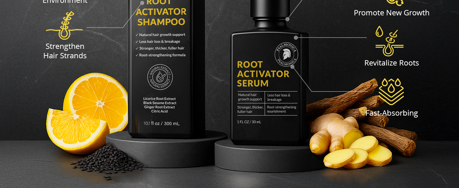 Root Activator Shampoo for Men & Hair Growth Serum Kit
